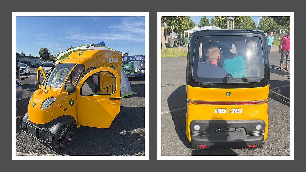 Drei ausgewachsene Menschen in einem dieser Fahrzeuge! Das war bei den erhöhten Temperaturen ein echtes elektromobiles Wagnis, wenn auch nur von kurzer Dauer.
